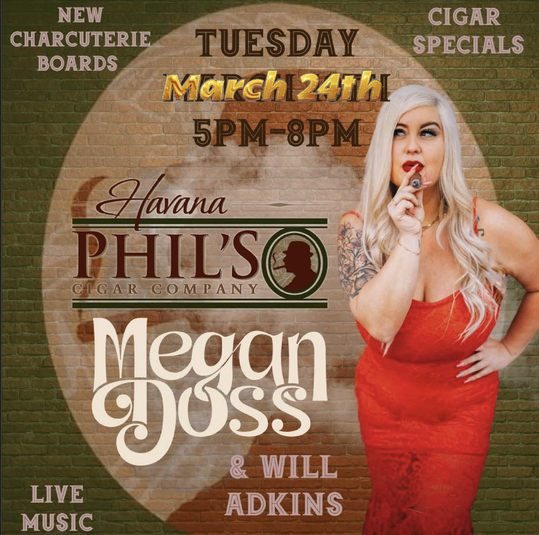Join us, Tuesday, March 24th from 5pm-8pm. We will be hosting Megan Doss on the patio!